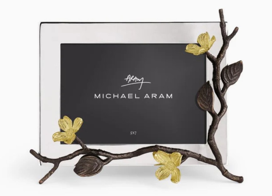 The Dogwood 5×7 Frame is a handcrafted masterpiece that blends polished gold-tone blooms with oxidized branches. This luxurious tribute to nature’s elegance captures the timeless beauty of the dogwood tree, adding refined artistry and warmth to your most cherished memories. Each frame’s unique finish reflects its handmade origin, ensuring no two are alike.